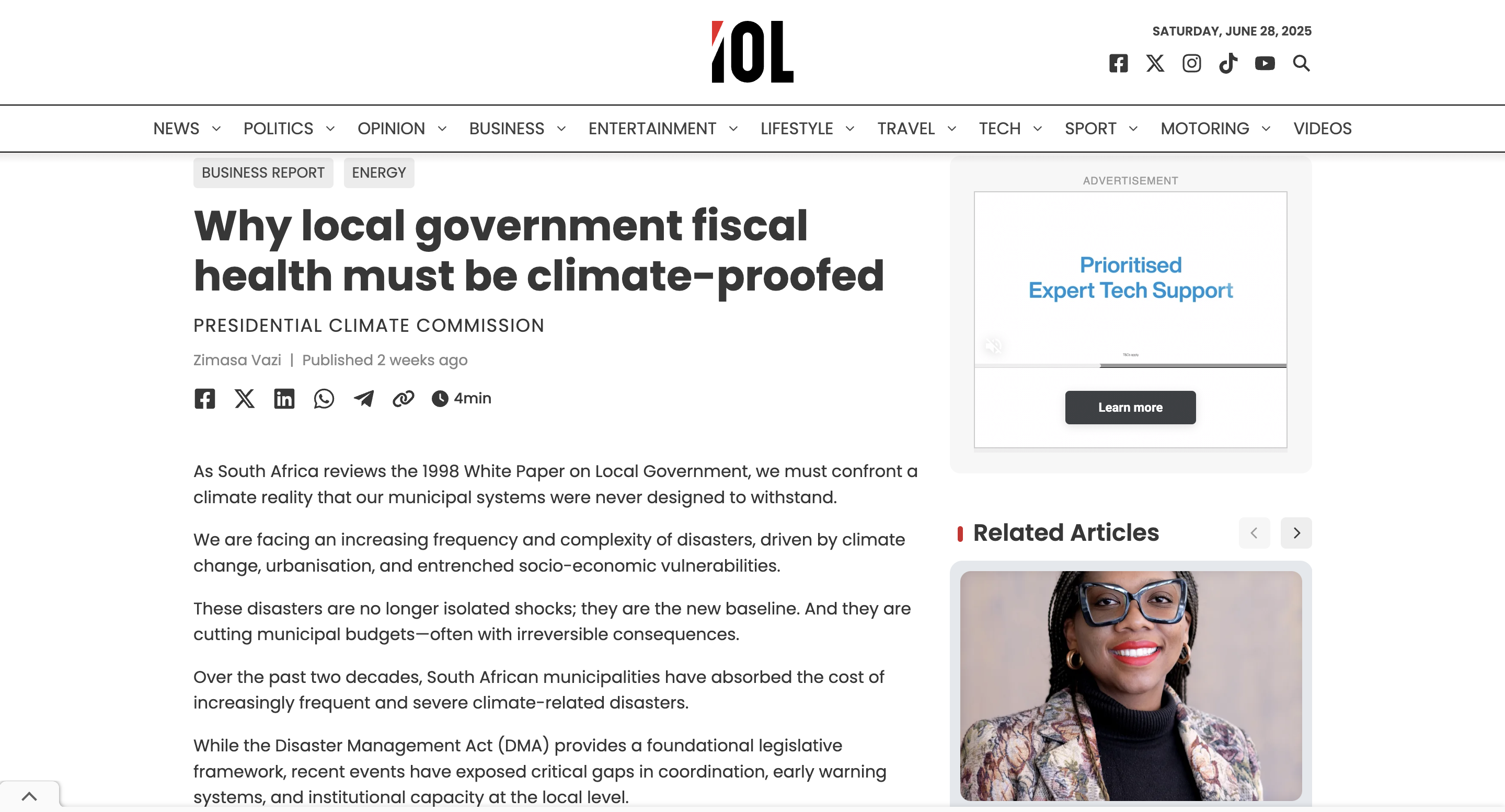 As SA reviews the 1998 White Paper on Local Government, we must confront a climate reality that our municipal systems were never designed to withstand