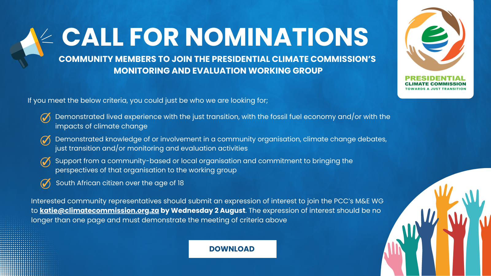 The Presidential Climate Commission (PCC) has embarked on a process to develop a common vision and pathways to achieve a just climate transition.