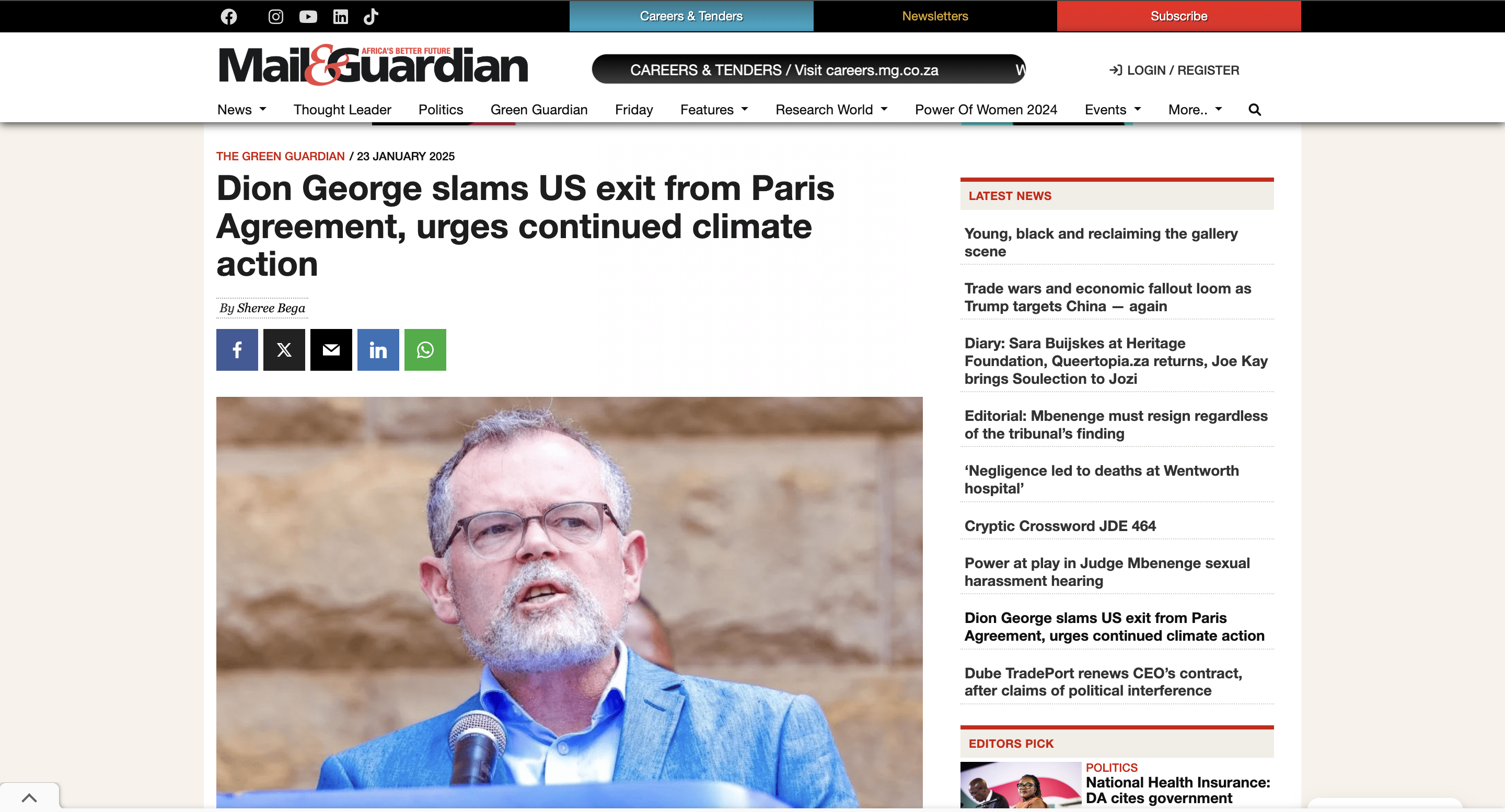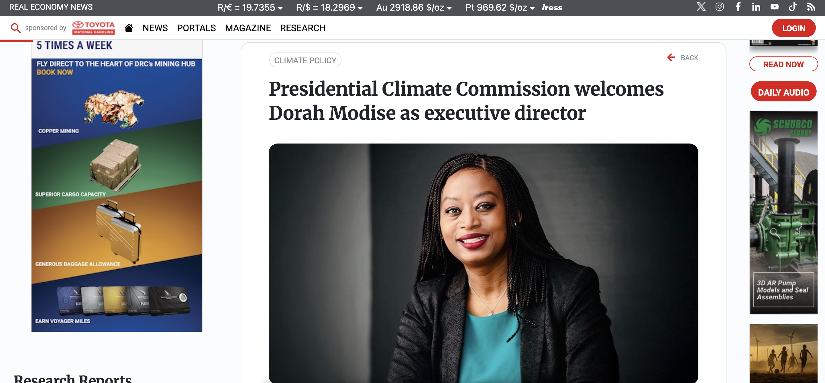In December 2020 we were appointed as the Presidential Climate Commission, constituted of 10 government ministers and 23 non-government representatives.
